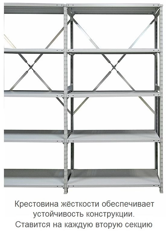 - Стеллаж ТСУ 4.15.5 (4000х1560х600) 5 монтируется без болтов, с помощью особых стяжек и крестовин жёсткости, что позволяет с лёгкостью собрать его без специальных инструментов. Уникальная конструкция придаёт изделию повышенную прочность и устойчивость.